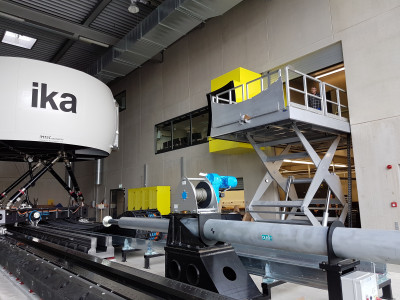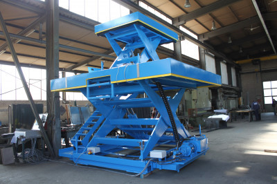 Doppelscheren-Hebebühne zum Beschicken eines Simulators.