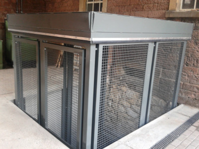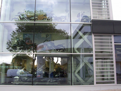 Diese Hebebühne verbindet die Verkaufsebene mit der Werkstattebene eines Motorradhauses.